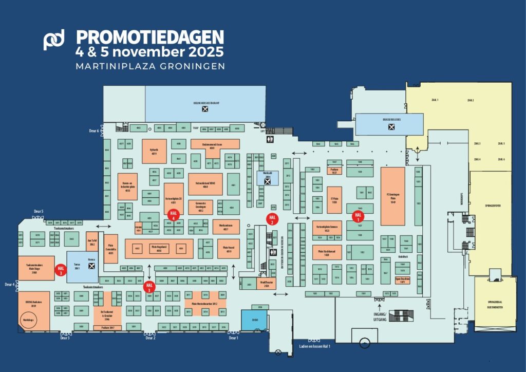 Hieronder vind je de beursplattegrond van Promotiedagen 2025.